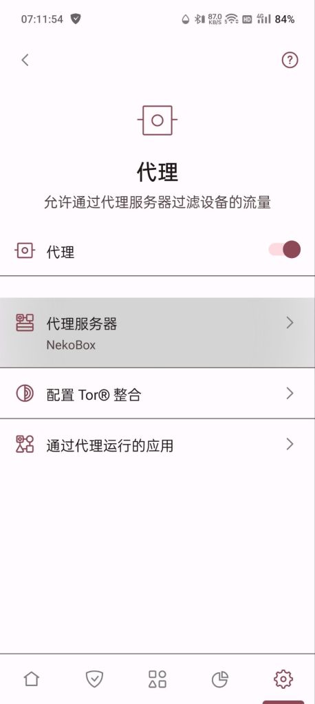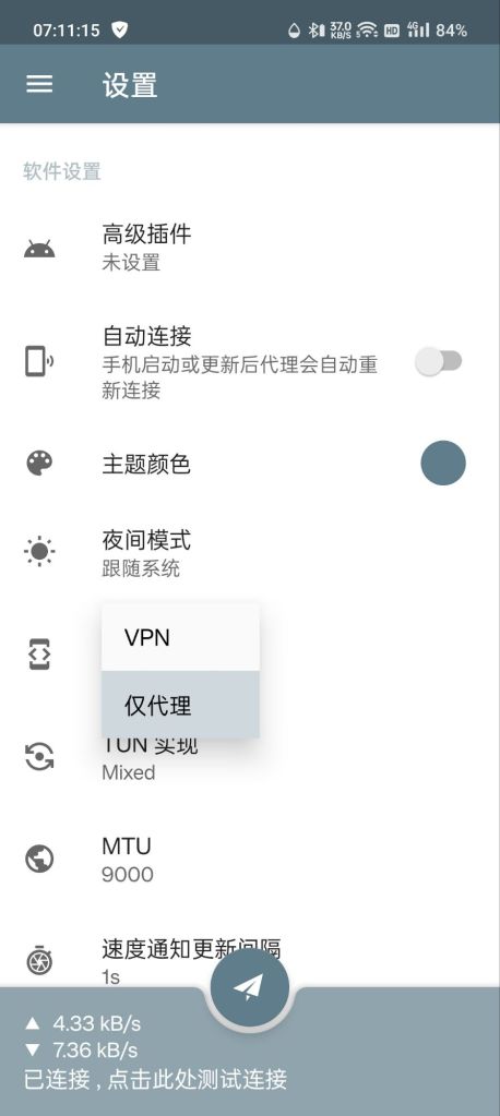 2.在nekobox的设置中将运行模式更改为仅代理然后正常启动nekobox,连接节点