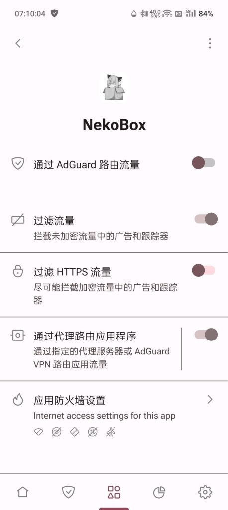 1.在adguard中关闭通过adguard路由nekobox的流量